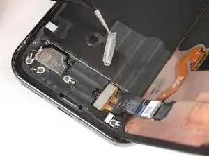 Следите за тем, чтобы не повредить шлейф дисплея, расположенный в нижнем правом углу.
