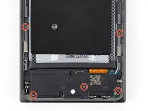 Используйте отвертку Torx T3, чтобы выкрутить тринадцать винтов длиной 4.9 мм, крепящих экран к рамке.