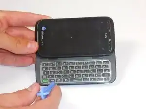 Используя пластиковый инструмент iFixit, отсоедините пластиковый корпус от клавиатуры. Это может потребовать некоторой силы.