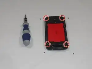 Открутите четыре винта в красных квадратах (по два в каждом квадрате), используя отвертку 00.