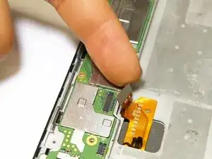 Осторожно отсоедините шлейф модуля экрана от материнской платы.
