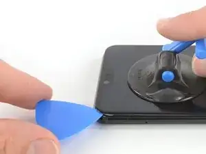 Проведите кончиком медиатора до верхнего левого угла телефона, чтобы разрезать клей.