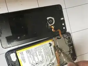 Отсоедините кабель датчика отпечатка пальца с помощью пластикового лопатки.