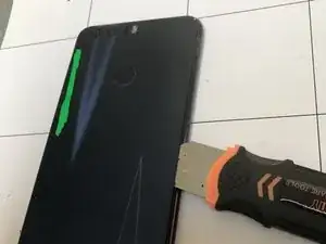 Нагрейте части, отмеченные красным, на задней стороне телефона феном или тепловой пушкой.