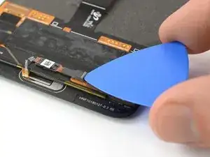 Используйте монтажную лопатку, чтобы открыть чёрный язычок ZIF-разъёма кнопки «Домой».