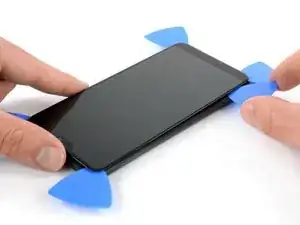 Вставьте медиатор для вскрытия в зазор и сдвиньте его к нижнему правому углу. Оставьте его там, чтобы клей не сомкнулся снова.