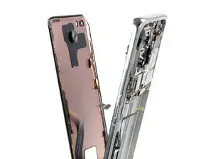 Поскольку модуль задней камеры выступает из средней рамки, рекомендуется положить под модуль бесворсовую ткань или похожую подкладку в последующих шагах, чтобы не повредить объективы.