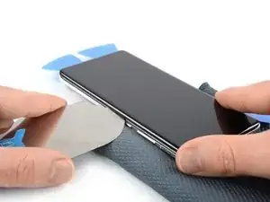 Проведите iFlex вдоль правого края вашего Huawei P40 Pro, чтобы разрезать клей.