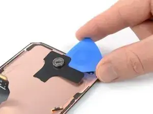 Узел модуля разговорного динамика удерживается слабым клеем. Если трудно его снять, вы можете подогреть iOpener и приложить к экрану, чтобы ослабить клей.