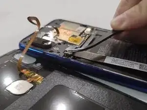 Не пытайтесь полностью снять заднее стекло пока что. Датчик отпечатков пальцев всё ещё подключён к плате.