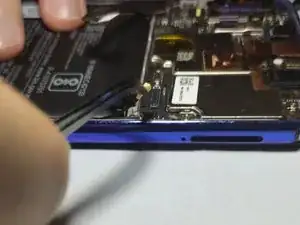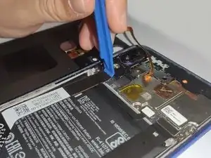 Затем ногтями или монтажным инструментом можно приподнять модуль динамика от нижней части телефона