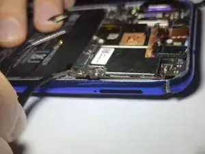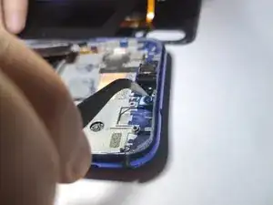 Теперь с помощью пинцета или лопатки аккуратно приподнимите пластиковую панель с телефона. Старайтесь не тянуть за соединения насильно, аккуратно сдвигайте, пока панель не ослабнет.