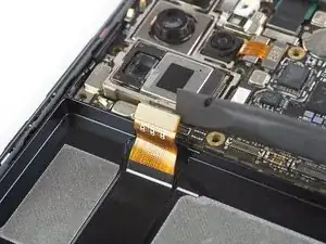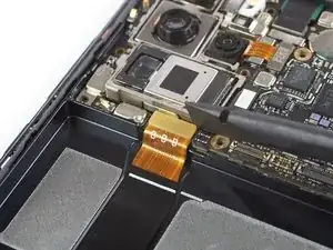 Используйте лопаточку, чтобы поддеть и отключить шлейф дисплея от материнской платы.