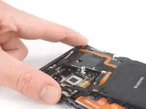 Выдавите крышку материнской платы из пазов по верхнему краю телефона, начиная с верхнего левого угла.