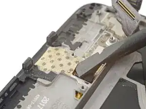 Используйте кончик лопатки, чтобы поддеть и отсоединить гибкий шлейф задней крышки от его разъёма.