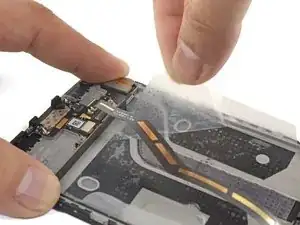 Если вы заменяете аккумулятор, отогните межсоединительный гибкий кабель в сторону от телефона и зафиксируйте его в стороне резинкой или лентой.