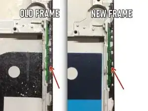 Проверьте толщину перемычки между аккумулятором и кнопками громкости! Эта толщина может отличаться между старой и новой рамкой экрана. Это может привести к защемлению кнопок громкости при сборке. Если перемычка на новой рамке толще, аккуратно соскребите пластик в местах, где физически будут расположены обе кнопки.