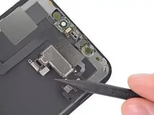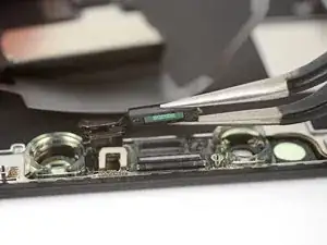 Используйте пинцет, чтобы покачивая, приподнять датчик окружающего освещения и вынуть его из выемки в дисплее.
