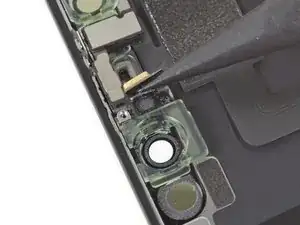 Используйте пинцет, чтобы пошевелить датчик освещённости и поднять его из выемки в дисплее.