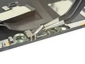 Используйте фен или тепловую пушку либо подготовьте iOpener и примените его к верхней части лицевой панели дисплея в течение 1–2 минут, чтобы размягчить клей, фиксирующий датчики.