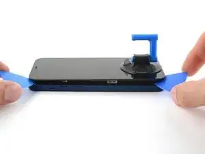 Приложите присоску к нижнему краю телефона, избегая самой кромки стекла.