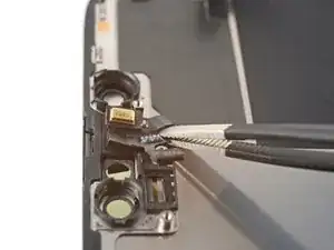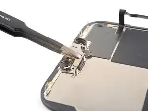 Используйте пинцет или пальцы, чтобы снять кронштейн переднего сенсорного модуля.
