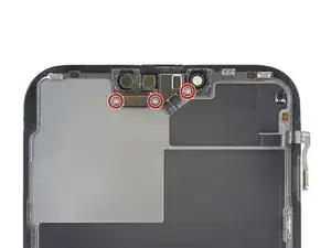 Используйте отвёртку Y000, чтобы вынуть три винта длиной 1,4 мм, фиксирующие кронштейн переднего сенсорного модуля.
