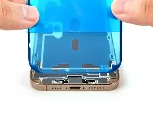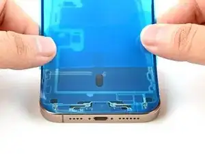 На этом этапе у вас всё ещё могут оставаться подкладки по периметру, которые препятствуют случайному приклеиванию при сборке iPhone. Не снимайте эти маленькие подкладки пока.