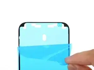 Если клей был повреждён или остался на старом экране, замените его полоской тонкой двусторонней ленты шириной 1 мм вдоль верхней границы.