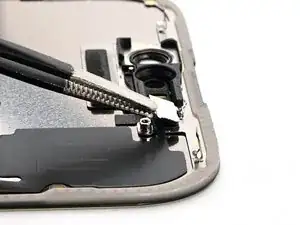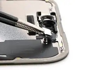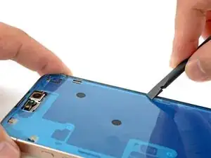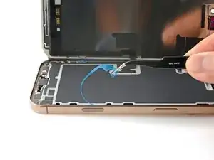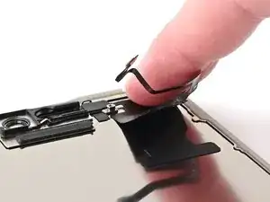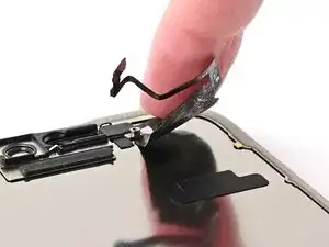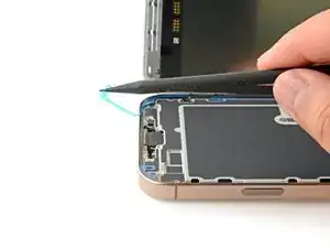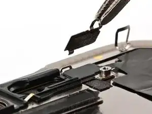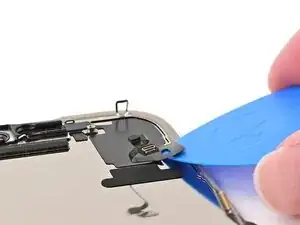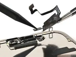 Примечание: Поскольку при этом ремонте невозможно отключить аккумулятор, особенно аккуратно обращайтесь с металлическими монтажными инструментами и не касайтесь оголённых контактов внутри iPhone.