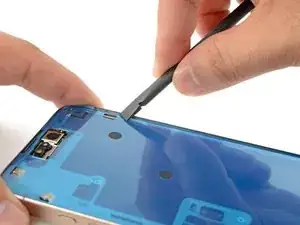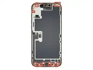 Используйте лопатку или пинцет, чтобы удалить кусочки клея с рамки iPhone.