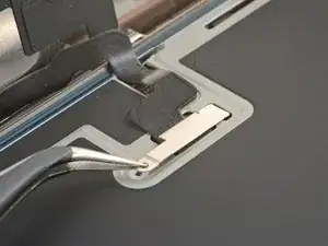 Используйте пинцет, чтобы вернуть на место любой клей, который мог закрыть датчик освещённости при его снятии. Клей должен образовывать рамку вокруг приподнятого прямоугольника.