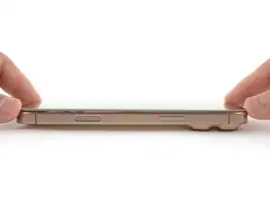 Отведите экран через левый край iPhone и положите его плоско на рабочую поверхность.