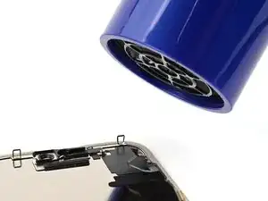 Используйте фен, тепловую пушку или iOpener, чтобы размягчить клей под датчиком освещённости и его кабелем. Он должен быть тёплым, но не горячим.