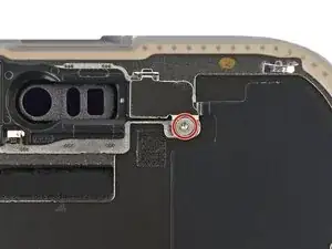 Используйте трёхлучевую отвёртку Y000, чтобы выкрутить два винта длиной 1.3 мм, фиксирующие крышки разъёмов переднего датчика и дисплея.