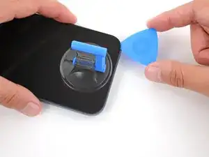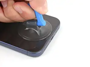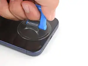 Поднимайте ручку‑присоску сильной, ровной тянущей силой, пока не появится зазор между экраном и рамкой.