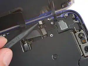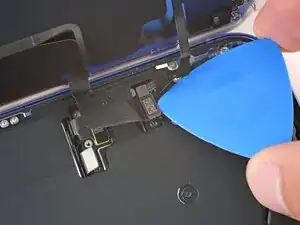 Используйте кончик лопатки для разъёма или острие лопатки, чтобы приподнять и отключить пресс‑коннекторы экрана и датчика освещённости.