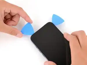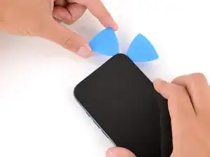 Между пластиковой оправкой и панелью дисплея есть шов. Не вставляйте шпатель сюда, иначе вы отделите их друг от друга и усложните ремонт.