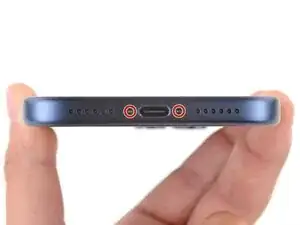 Используйте пенталобный отвёрток P2, чтобы выкрутить два винта длиной 7,5 мм по обе стороны зарядного порта.