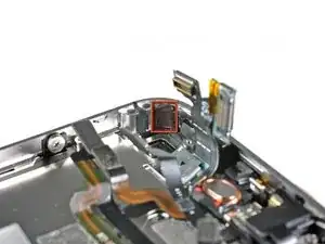 Поднимите маленькую заземляющую скобу с логической платы и выньте её из iPhone.