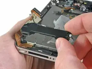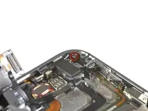 Удалите винт Phillips #000 длиной 2,5 мм, фиксирующий логическую плату возле кнопки питания.