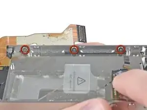 Удалите винт Phillips длиной 1,6 мм, фиксирующий сборку дисплея возле кнопки питания.