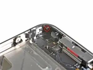 Удалите винт Phillips длиной 1,6 мм рядом с разъёмом для наушников.
