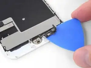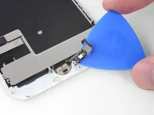 Используйте инструмент для открывания, чтобы поддеть левый край разъёма шлейфа кнопки «Домой» и отключить его от гнезда.