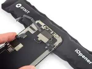 Используйте фен или тепловую пушку либо подготовьте iOpener и приложите его к верхней передней части дисплея примерно на минуту, чтобы смягчить клей, удерживающий датчики.