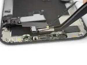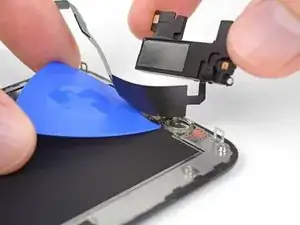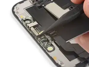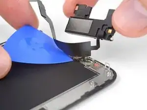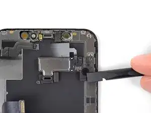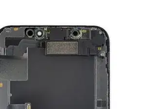 Комбинированный динамик слухового канала и модуль датчиков, закреплённый на задней стороне дисплея, с завода сопряжён с вашим конкретным iPhone, поэтому при любой замене дисплея вы обязаны перенести его со старого дисплея на новый. Он содержит подсветку потока (flood illuminator), которая является частью биометрической функции Face ID. Если он повреждён или заменён, Face ID перестанет работать, поэтому проявляйте особую осторожность, чтобы не повредить эти компоненты в ходе процедуры. В случае повреждения восстановить работу Face ID может только Apple.