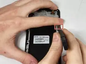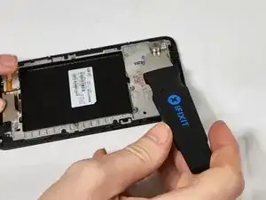 Вставьте медиатор (Jimmy) в небольшой зазор между краем экрана и корпусом телефона. Аккуратно подденьте, пока он не отщёлкнется, затем уберите медиатор и вручную медленно отделите корпус от экрана.