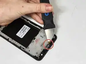 Подденьте медиатором под небольшое соединение со сборкой экрана и отведите его.