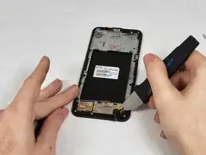 Теперь вы должны быть в состоянии аккуратно отвести материнскую плату от сборки экрана и снять её. Рекомендуется схватить край у порта и поднимать одной рукой, удерживая телефон другой рукой.