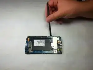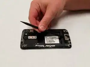 Используйте пластиковую лопатку или ноготь, чтобы вынуть батарею из устройства и отложить её в сторону.